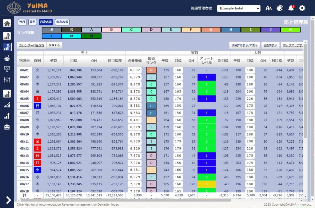 予約数に対してアラートを設定でき、瞬時に状況を把握することができます。